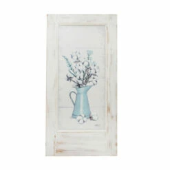 This wooden framed floral arrangement wall dΓ©cor showcases a floral arrangement in a pitcher that stands out against the soft white painted wooden background. This stunning work of art is bound to be a wonderful centerpiece to your home dΓ©cor. Grace your walls with this nature inspired style of art set.
