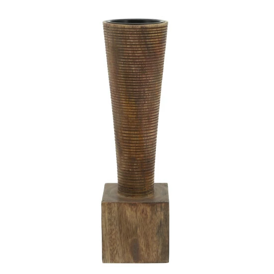 Enhance your home with this extraordinary candle holder. The top is carved out with a geometric ribbed design to bring an abstract designs to any room in your home.Sagebrook Home has been formed from a love of design, a commitment to service and a dedication to quality. They create and import fashion forward items in the most popular design styles. Backed with years of experience in the textile field, They are now providing a complete Home decor story. the combination of wall decor, furniture, lighting and Home accessories are all coordinated with textiles to provide a complete Home look. Sagebrook Home is committed to providing the best Home dรฉcor and accent pieces at value prices. Item Dimensions:4x4x13/Color: Brown Materials: Mango Wood Category: Candles, Candle Holders And Lanterns, Candle Holders And Tealights Product Theme/Style/Trend: Contemporary Country Of Manfacture: In